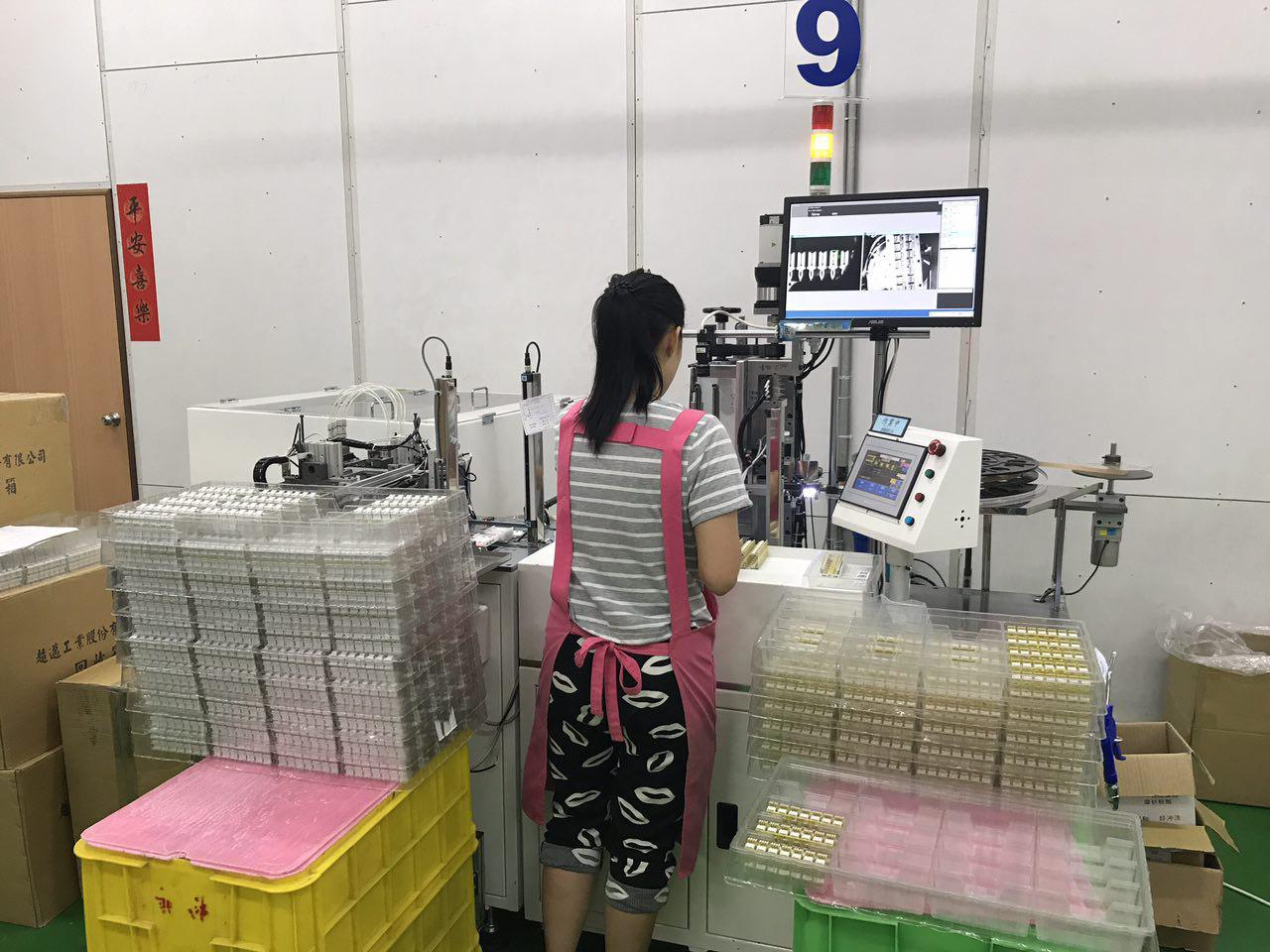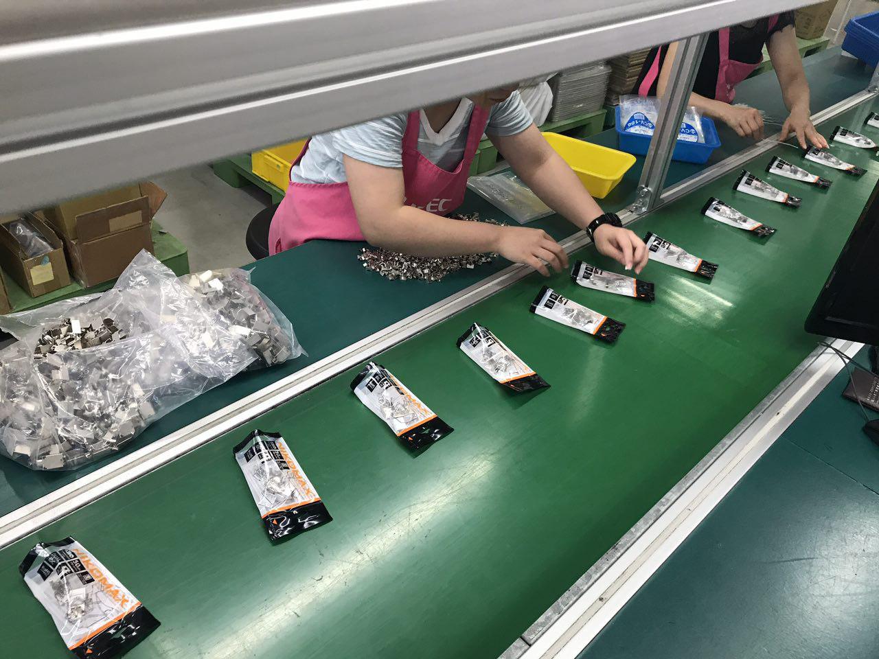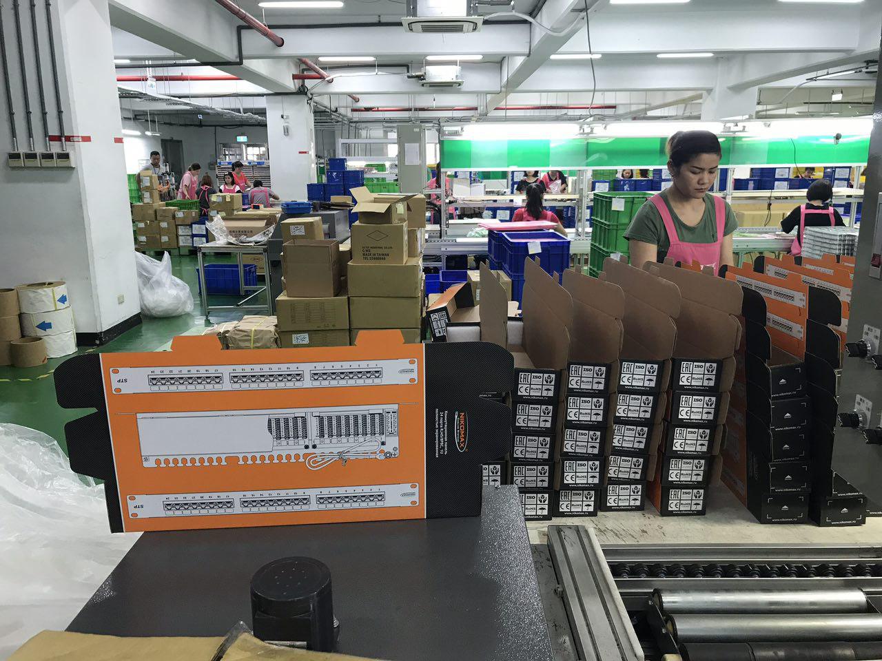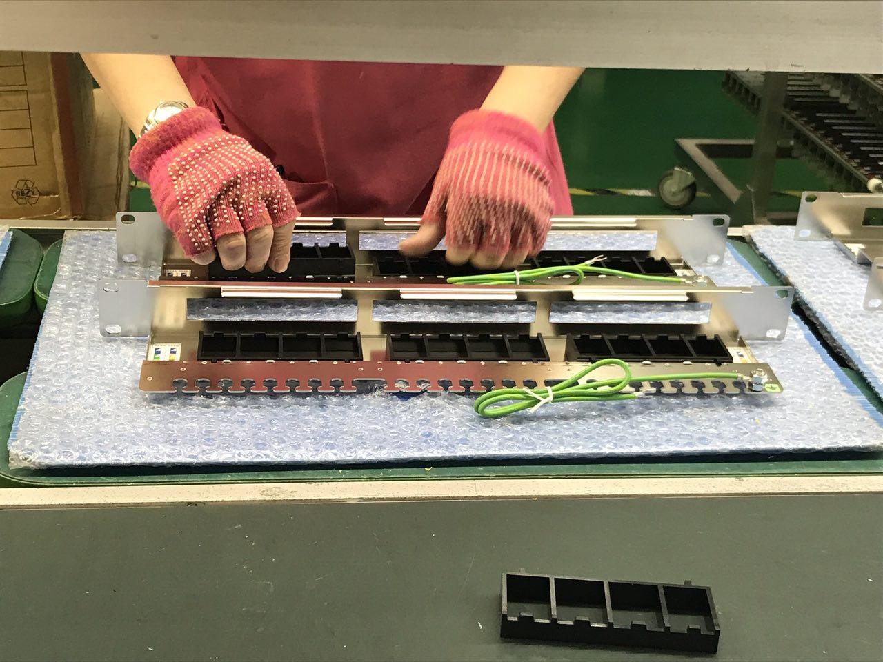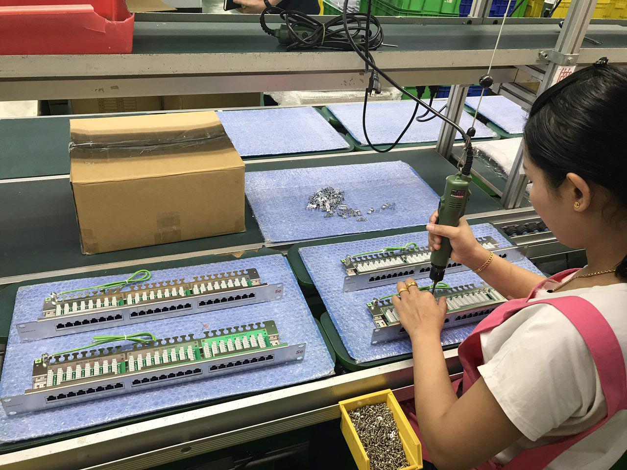 There are a lot of conveyor lines in Factory B. Some of them are fully automated, such as the soldering printed circuit boards or inserting pins. Some lines - mainly assembly and packaging - involve a large part of labor forces. At the control stage, machines and humans are combined for a 100% quality guarantee. No potential flaw can hide itself from the "3-in-1 controller"; this device checks the continuity of the component and wiring label direction, and if puns are sunk. The probability that the human eye misses some problem at first, and then the machine fails to detect it is zero. Because NIKOMAX keystone modules are constantly involved in projects with a 25-year warranty, they simply cannot be defective.